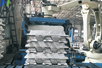 機器人碼垛裝置作為一種成套自動化設備,在機械制造、食品、飼料、醫(yī)藥、化工、水泥等多個行業(yè)得到了廣泛應用。我司專注于開發(fā)針對鋁、鋅、鉛、銅等有色金屬鑄錠生產線的碼垛機器人系統(tǒng),實現(xiàn)了對鋁錠的自動抓取與高效碼垛功能。該設備不僅顯著節(jié)省了人工成本,還大幅提高了生產效率,同時優(yōu)化了車間布局,減少了占地面積,并有效美化了生產環(huán)境。通過自動化解決方案,我們致力于為客戶打造智能化、高效的有色金屬生產流程,助力企業(yè)提升競爭力和運營效率。